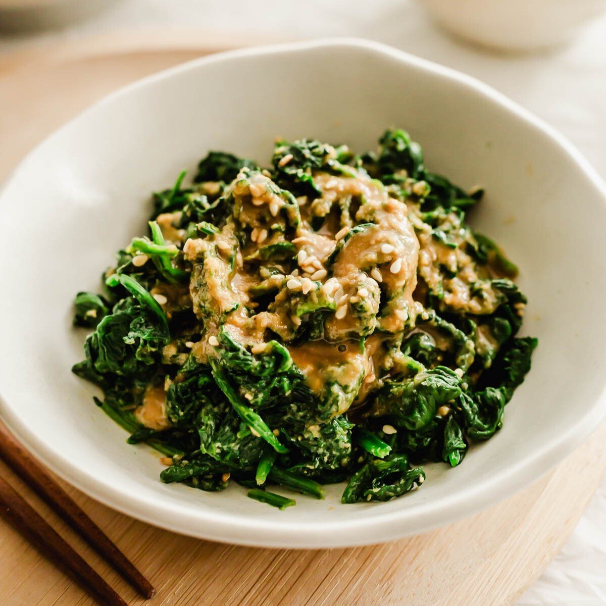 Minimal ingredients: with a few pantry ingredients, you can easily whip up the sesame sauce to toss into the blanched spinach.